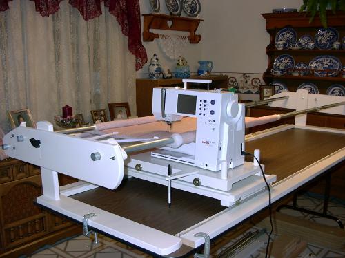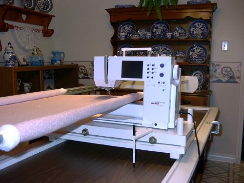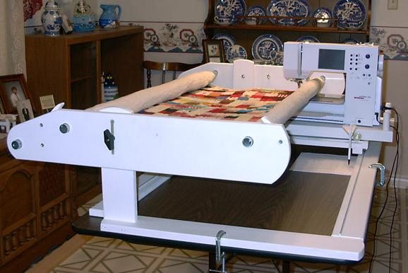 The carriages are equipped with ball bearing wheels which glide smoothly on metal tracks. A handy removable stylus is included that allows you to follow pattern designs making curves and swirls to suit your fancy. The gliding carriage allows you to guide and pivot your machine easily rather than wrestling a giant quilt inside your machine!